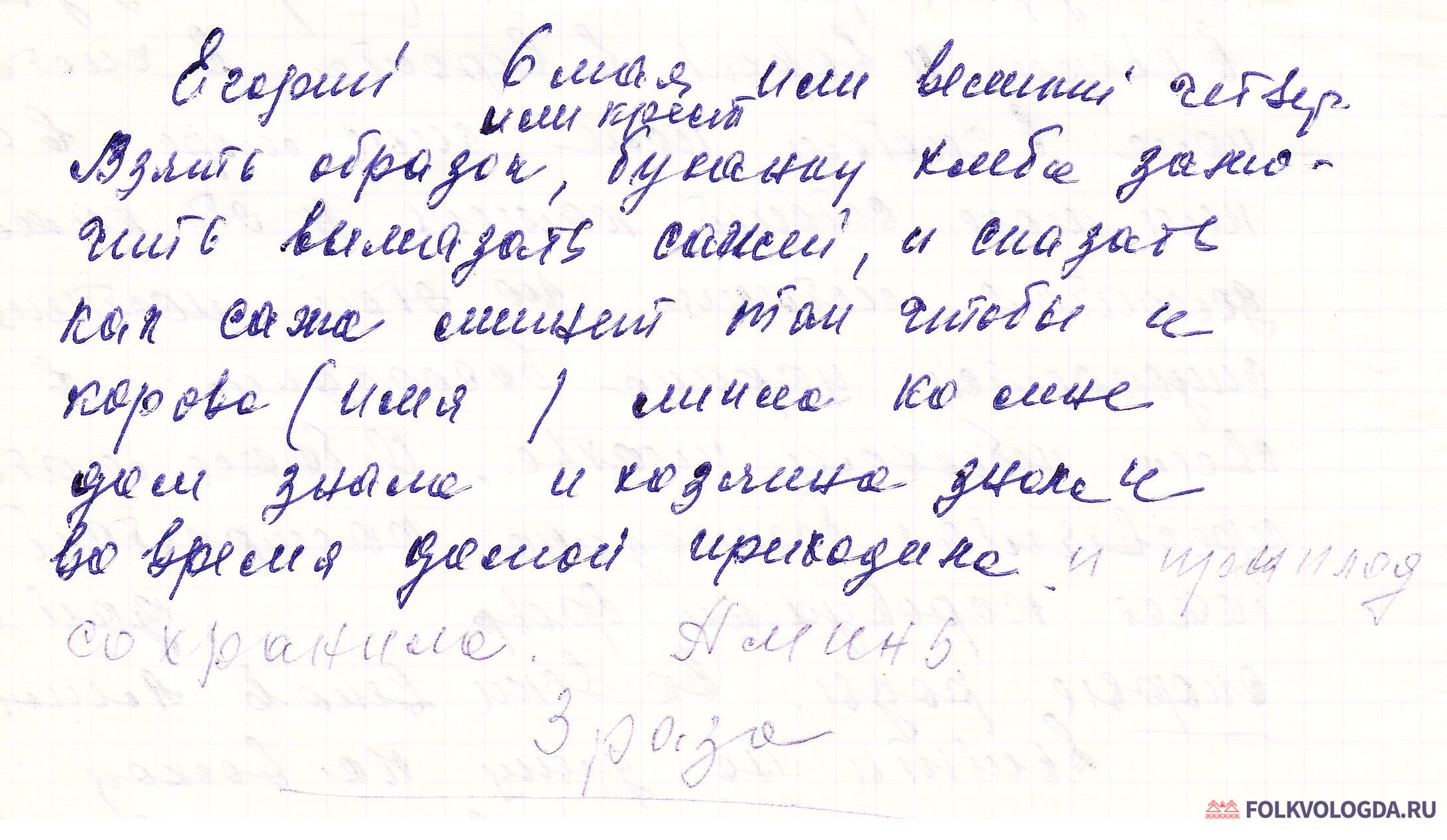 Приговор в Егорьев день или на Великий четверг, чтобы корова «дом знала»