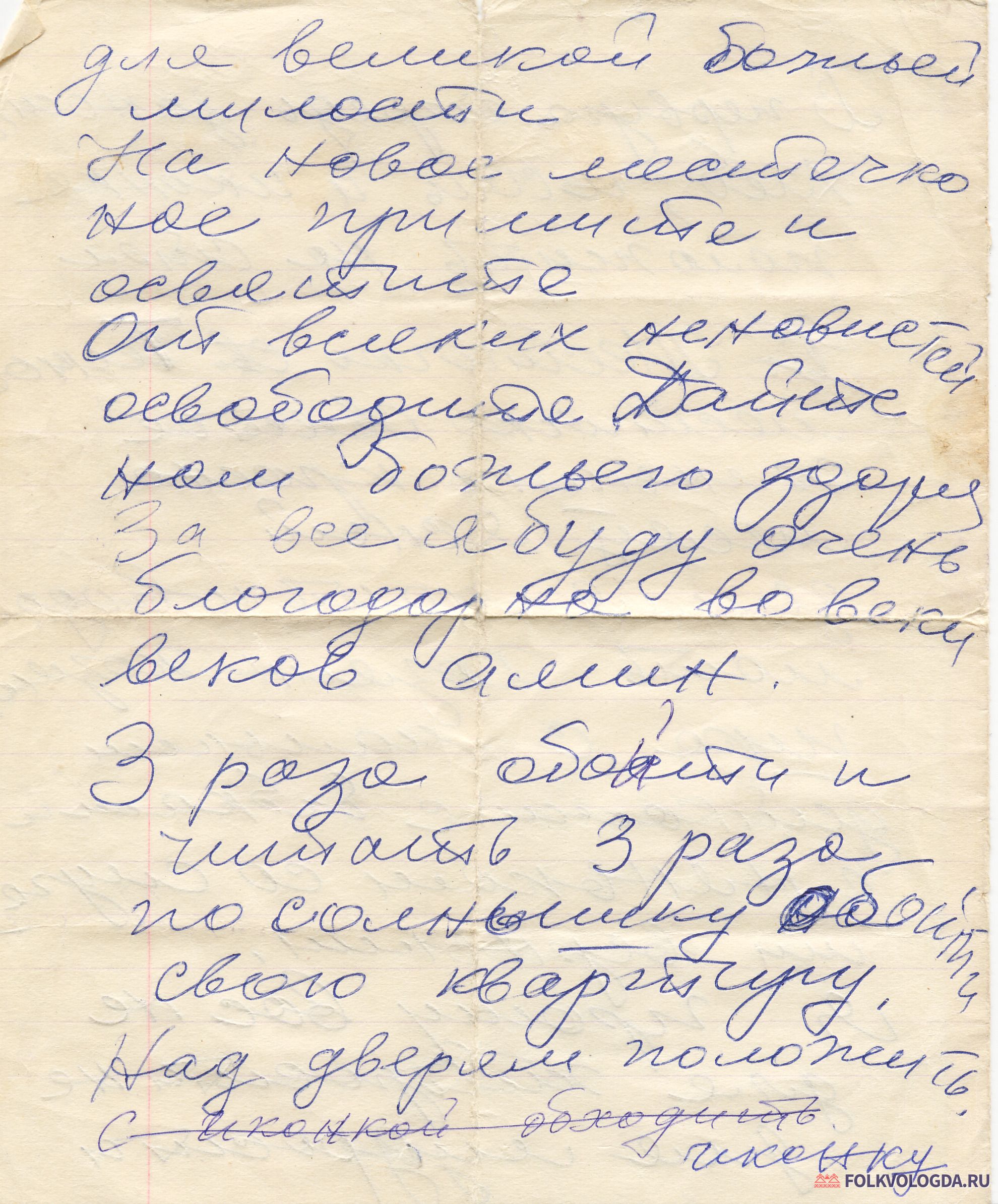 Комментарий после текста: 3 раза обойти и читать 3 раза. По солнышку обойти свою квартиру. Над дверям положить иконку. [С иконкой обходить]