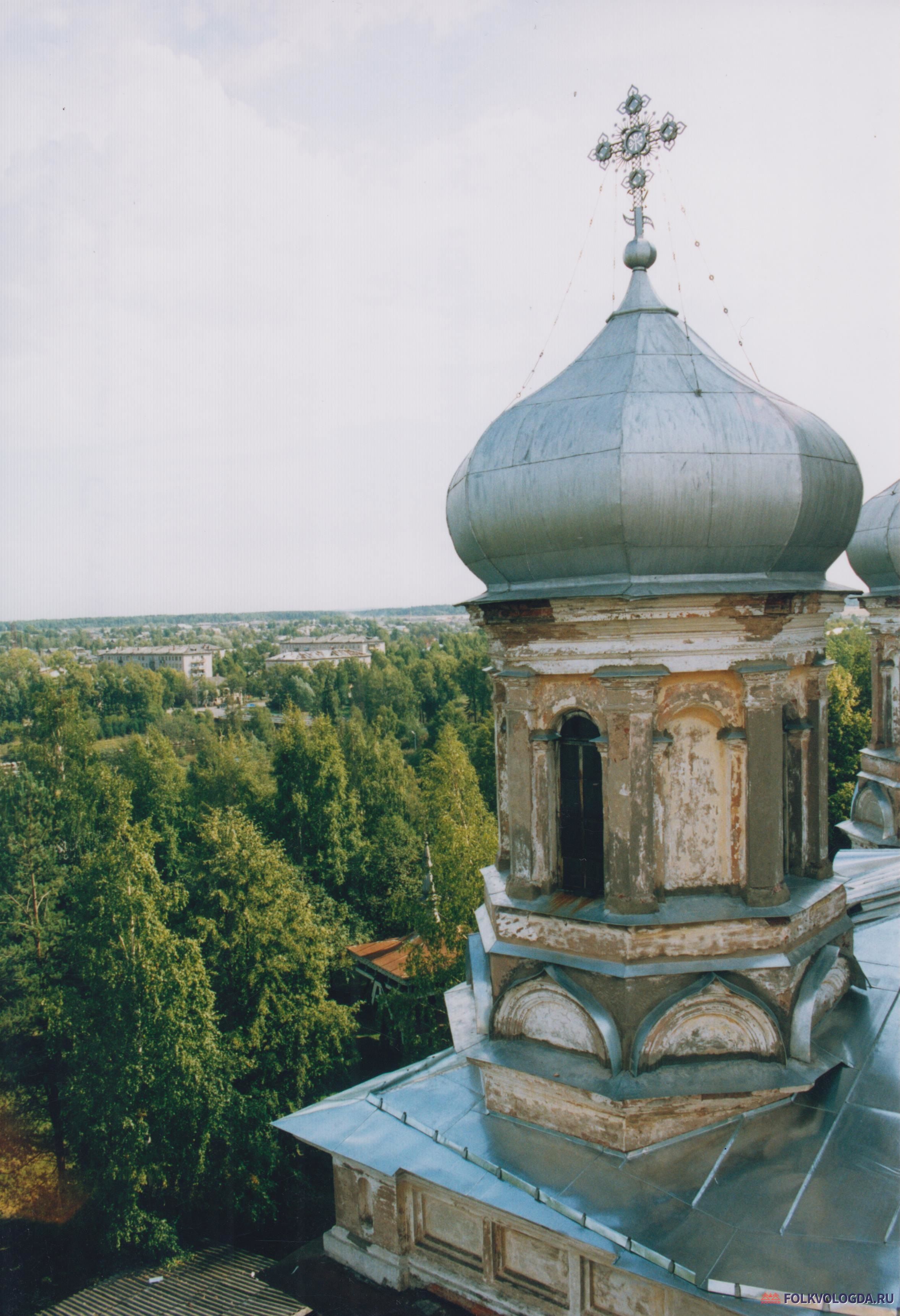 Фото с колокольни с видом на купола церкви Сретения Господня (Сретенской церкви, 1869 – 1873 г.) в г. Вытегре