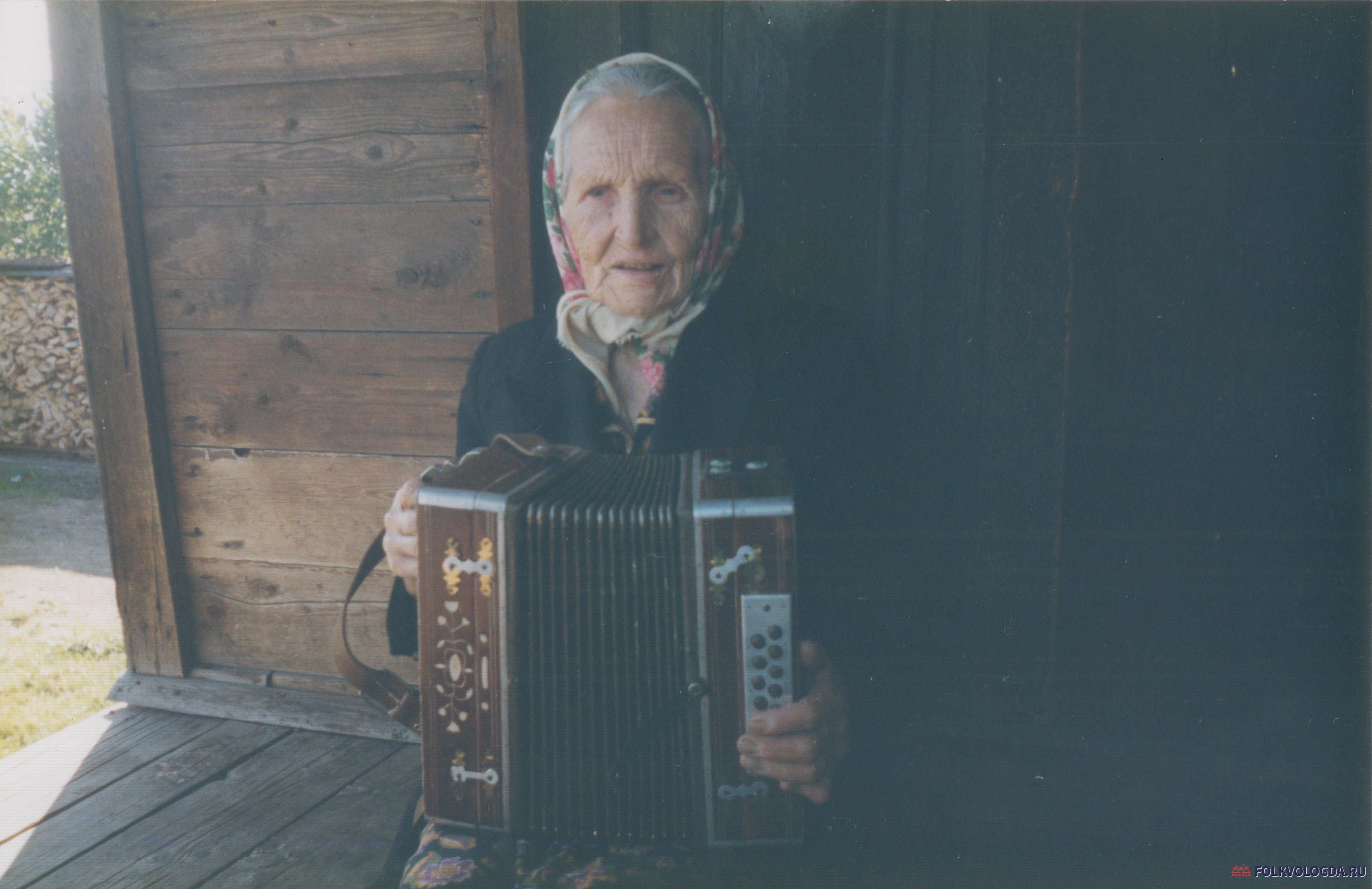 Фото гармонного мастера Усановой В. Ф. с кирилловской гармонью в г. Харовске